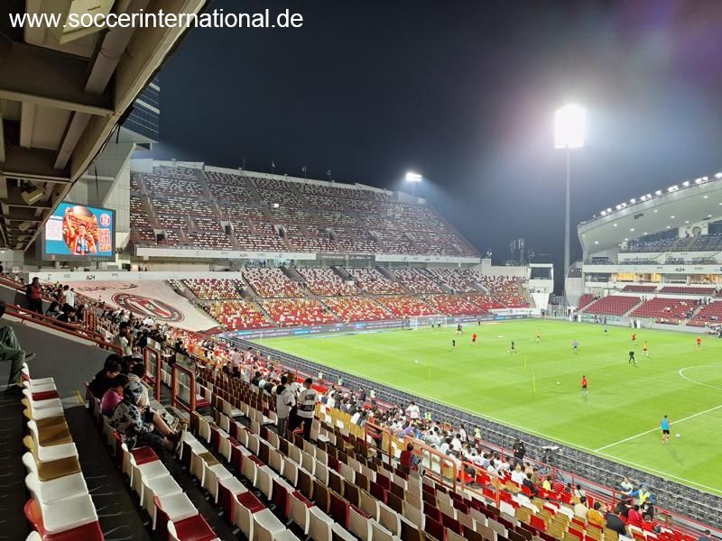 42.000 Zuschauer finden hier Platz. Gekommen sind keine 2.000. Die 50 Gäste aus Dubai erfreuten sich an drei Toren. Das Catering hatte sich zum Vergleich von gestern um Sandwiches erweitert.